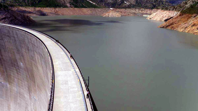 Utunkat a Lac d’Emosson víztározó felé folytattuk. Ehhez Martigny felé át kellett mennünk Svájcba. A tó 1930 m magasan fekszik, a völgyzáró gát 180 m magas.