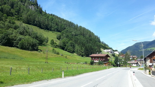 Ebéd után a 305-ös úton nyugat felé továbbhaladva egy kerülővel terveztük a hazatérést, Ausztriába a 21-esen léptünk vissza, ami innen már a 178-as utat jelenti, majd ezen dél felé haladva és a 311-esre váltva értük el Saalfelden am Steinernen Meer-t. A lakott részre beérve szembesültünk azzal, hogy ismét vehetjük fel az esőruhát. A legjobbkor álltunk félre a városka talán legkisebb alapterületű benzinkútjánál, mert két perc múlva jég kopogott az aszfalton. Innen a 164-es sz. úton továbbmenve sem csalódtunk a tájban és az útminőségben, szóval élménymotorozás következett.