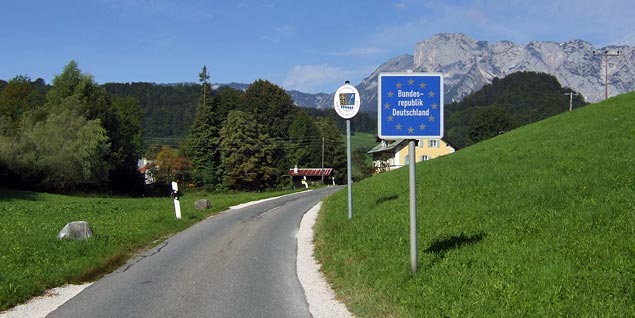 Hétfőn levágjuk a sztráda Németországba menő kitérőjét, sajna ahogy emlékeztem is, ezt sokán mások is megteszik. Szép útszakasz, de haladni azt nem lehet. Viszont a gps „legrövidebb út” beállítása miatt egy kb. másfél méter széles kis úton jutunk át Németországba, valamint elnézünk Berchtesgadenbe is.