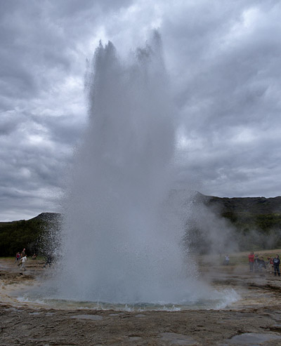 A Strokkur a világ 4. legmagasabbra feltörő gejzíre (25-35m), ráadásul ezt nagyon szorgalmasan, 5-8 perces rendszerességgel teszi, tehát a legjobb turista látványosság – volt is körülötte sok csodálkozó, kövér amerikai, buszos turista.