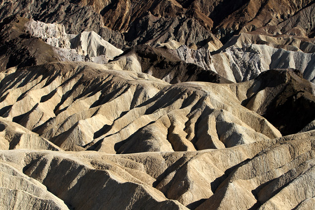 A Zabriskie Point Christian Brevoort Zabriskie-ről, a Pacific Coast Borax bányatársaság igazgatójáról kapta a nevét. Az iszapkő sziklák attraktív bordázatát a ritkán, de akkor nagyon intenzíven hulló eső formálta. Minél több árnyékot kap annál drámaibb az itt készíthető fénykép. Nem is csoda, hogy a fotósok megint munkához láttak.