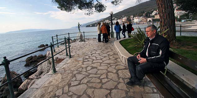 Péter szerint Opatija (Abbázia) Rijeka Szentendréje, mert olyan közel van és az emberek oda járnak sétálni, romantikázni. Később hozzátette, hogy Opatija mindegyben Horvátország Cannes-ja is, mert ez itt az országos rongyrázás központja. Lehet benne valami, gondolom miközben olvasom az út menti szállodák nevét: Ambasador, Admiral, Kristal, Excelsior. A kaszinók számából ítélve Opatija akár Kelet-Európa Las Vegasa is lehetne. Az útikönyvben később azt olvastam, hogy Opatija Horvátország Monte Carloja és az Adria Nizzája. A sok rettenetesen felcsillagozott szálloda után örömmel vettem észre a mindössze három csillagos Hotel Istrát, ahol végül kivettünk két szobát. Azon tűnődtem, hogy akkor most Szentendre Budapest Abbáziája-e.