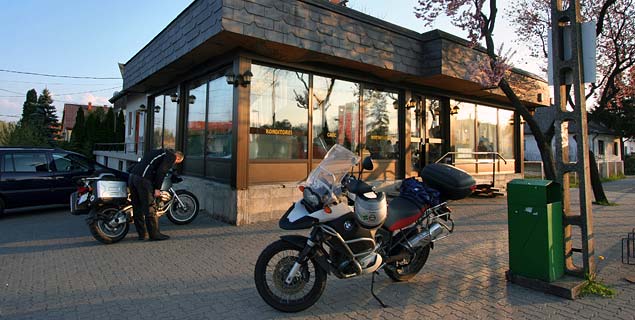Tizenegy óra körül Letenyénél léptük át a határt. A határőr kedvesen figyelmeztetett minket „Csak Zágrábot kerüljék el, mert ott van Bush és meg sem lehet mozdulni a városban.” A horvát oldalon az útlevelemet a tanktáskára tettem, jó messzire elhúztam az átkelőtől, aztán megálltam, hogy eltegyem, de addigra már eltűnt. Visszasétáltam a sötétben és meg is találtam az agyonhasznált okmányt a földön. Minden néptelen volt, közel-távol senki. Visszasétáltam a motorhoz és most már rendesen elraktam a holmimat, közben Péter is odajött megnézni mit vacakolok. Épp indulni készültünk, amikor a horvát határőr jelent meg a hátunk mögött. Felindultan magyarázta, hogy itt nem állhatunk, mert akadályozzuk a forgalmat. Mellettünk öt forgalmi sáv üres, közel-távol negyed órája egy lélek sincs és eljött 300 métert az őrhelyéről, hogy ezt elmondhassa. Ez aztán hivatástudat.
