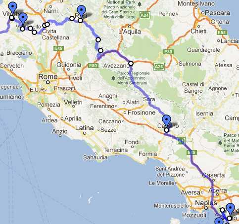 Ez a nap az Appenninekről szólt. Reggeli után a térképen megnéztük, merre vezetnek szép látványutak, s igyekeztünk a legtöbbet felfűzni belőlük a pompei-i célállomásig. Nem készültünk fel a kulturális látnivalókból, ezért inkább csak a természeti látványosságokat tartottuk szem előtt.
