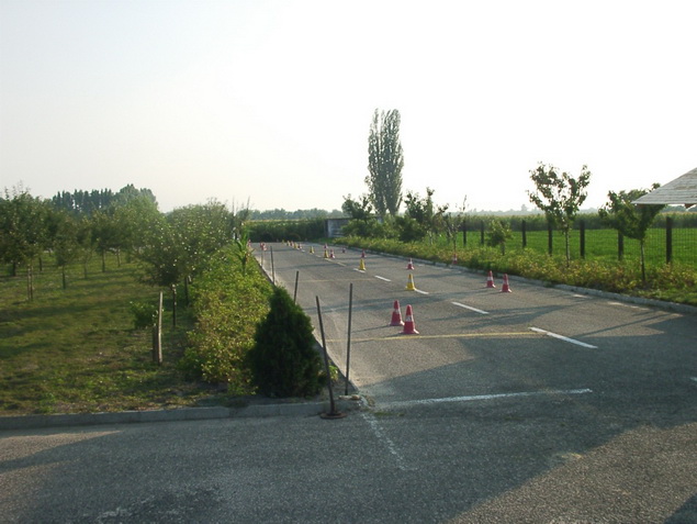 Talán a kopasz gladiátorok meredhettek a Colosseum zavaróan félelmetes pódiumára olyan ijedten, mint én a szűk sorban rendezett bójarengetegre, amikor betoltam a pálya kezdő pontjára a Hondát. Természetesen egy szót sem értettem abból a magyarázatból, ami a nyomvonal helyes követésére vonatkozott, így Sanyi a negyedik próbálkozást követően felvezetőt rendelt elém, egy tőlem talán húsz évvel fiatalabb kislány személyében. Véleményem szerint ez is megalázás csomag részeként érkezett a jól szituált oktató intézményesített tudásrepertoárjából.